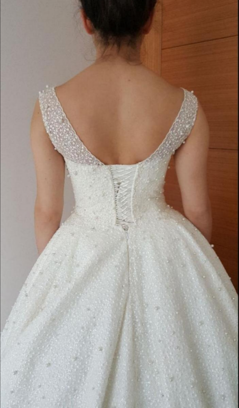 Dügun ve fotograf cekimi icin kullanildi, gayet iyi durumda deformesi yoktur. Astari var. Arka ipleri sayesinde S-M-L uyumlu olabiliyor. Aykkabi ile 170 boy olmustu Sahibinin Boy: 160 Kg: 55