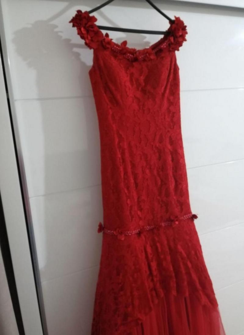 Balık model Kırmızı çiçekli dantelli hafif kuyruğu olan sadece kendi kınamda severek giydiğim bir elbise. Hiçbir kusuru yok mükemmel durumda Sahibinin Boy: 170 Kg: 55