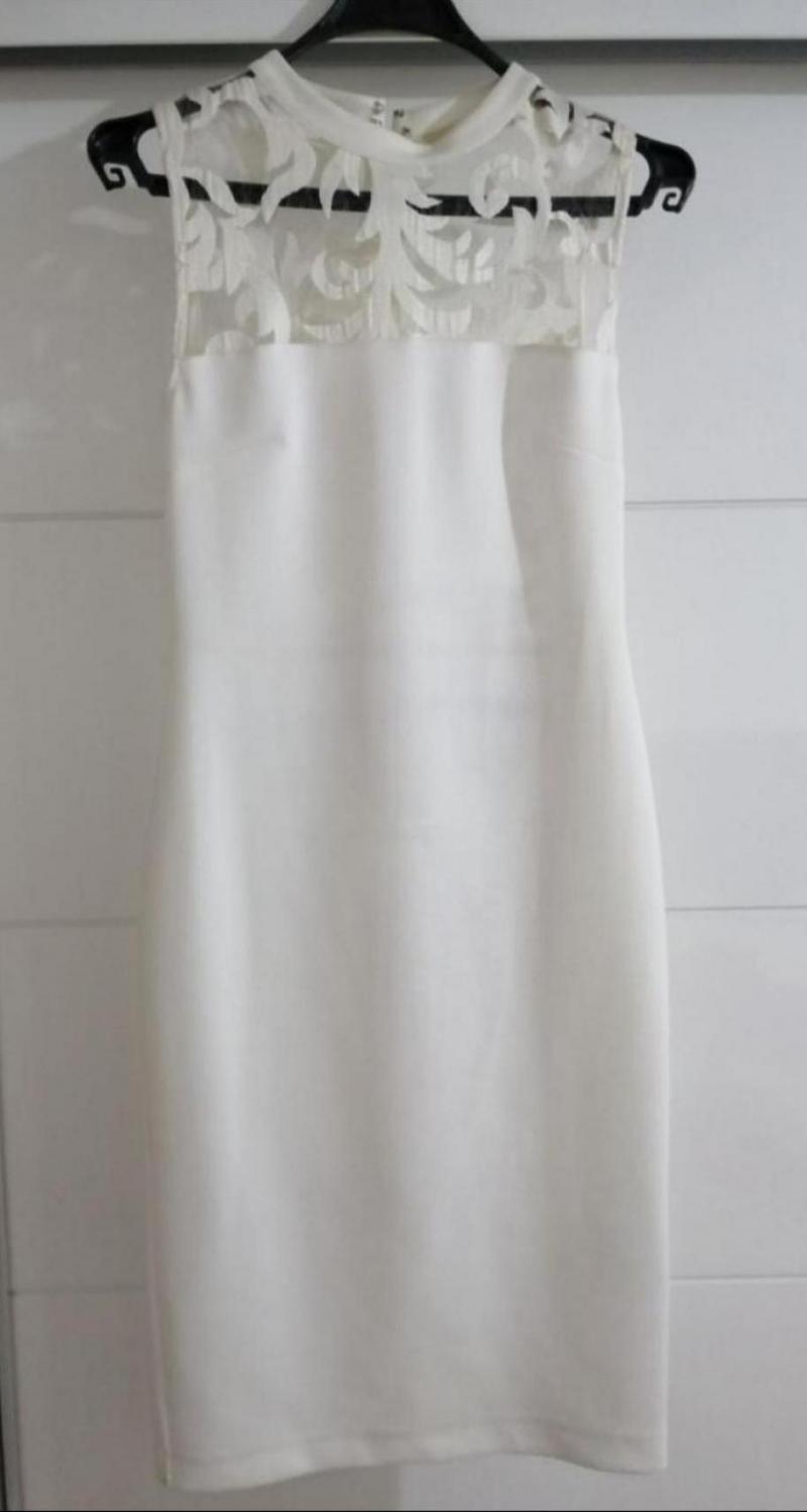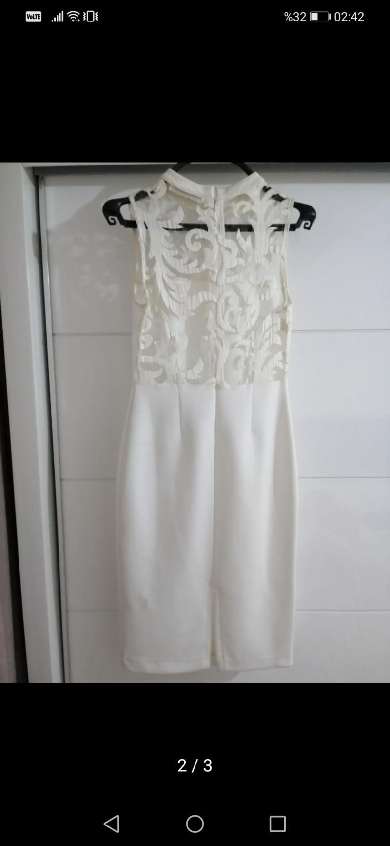 Beyaz renkte hiç giyilmedi sırt detayı olan kalem elbise