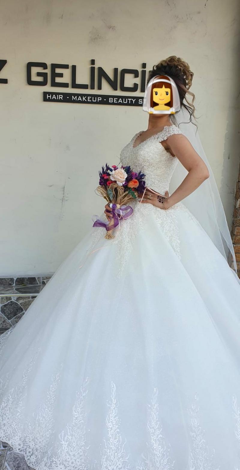 A kesim gelinlik. Çıtır dantel. Cıvır simli tül. Kuyruklu. Pandemiden dolayı 1 saat giyildi. Yeniye yakın yırtık sökük yoktur. 36,38,40 bedene uygun. Özel dikim. Normal fiyatı 4800olan gelinligimi 2000 den satıyorum.
