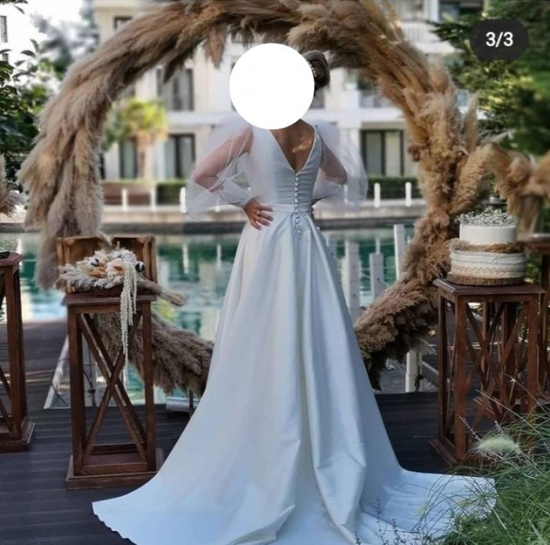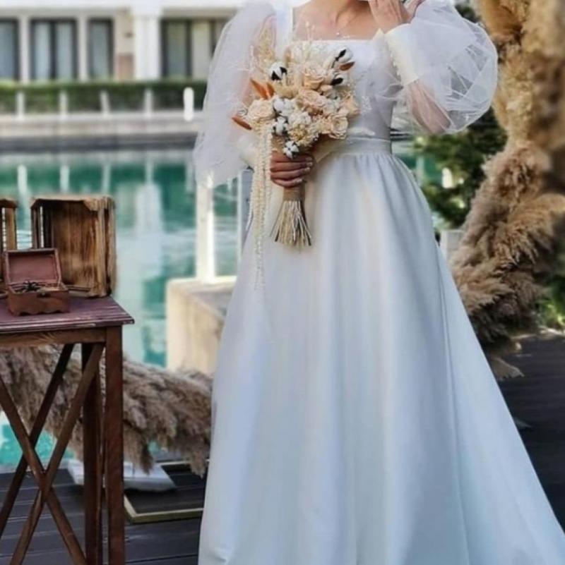 Helen model nikah düğün elbisesi. Mikado el işciliği. Beden ayarlanabilir. Kuru temizleme yapılmış
