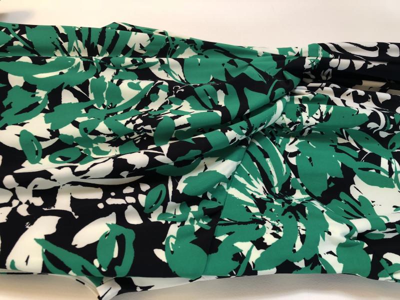 Beli ve kalça kısmı vücuda oturuyor. Siyah-yeşil-beyaz çiçek desenli.
