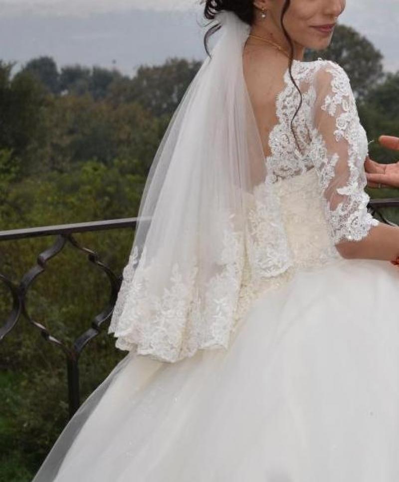 Özel dikimdir sadece nikâhta giyilmiştir . Tarlatan ,Uzun duak islemeli kısa duak ve saç aksesuarını da içindedir.