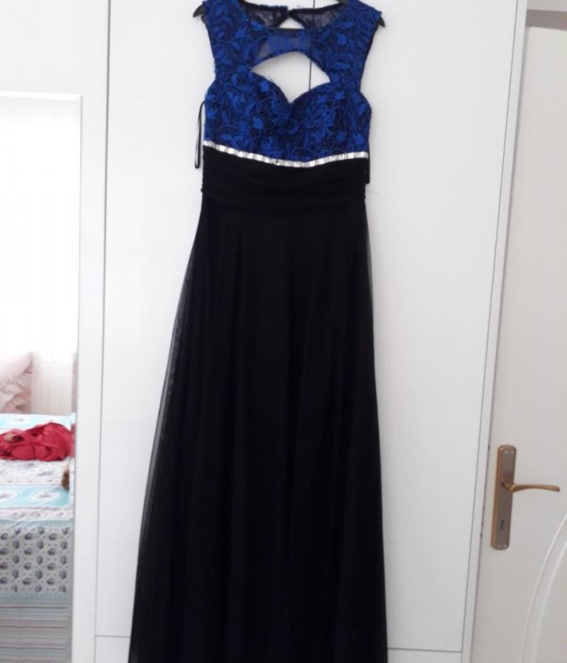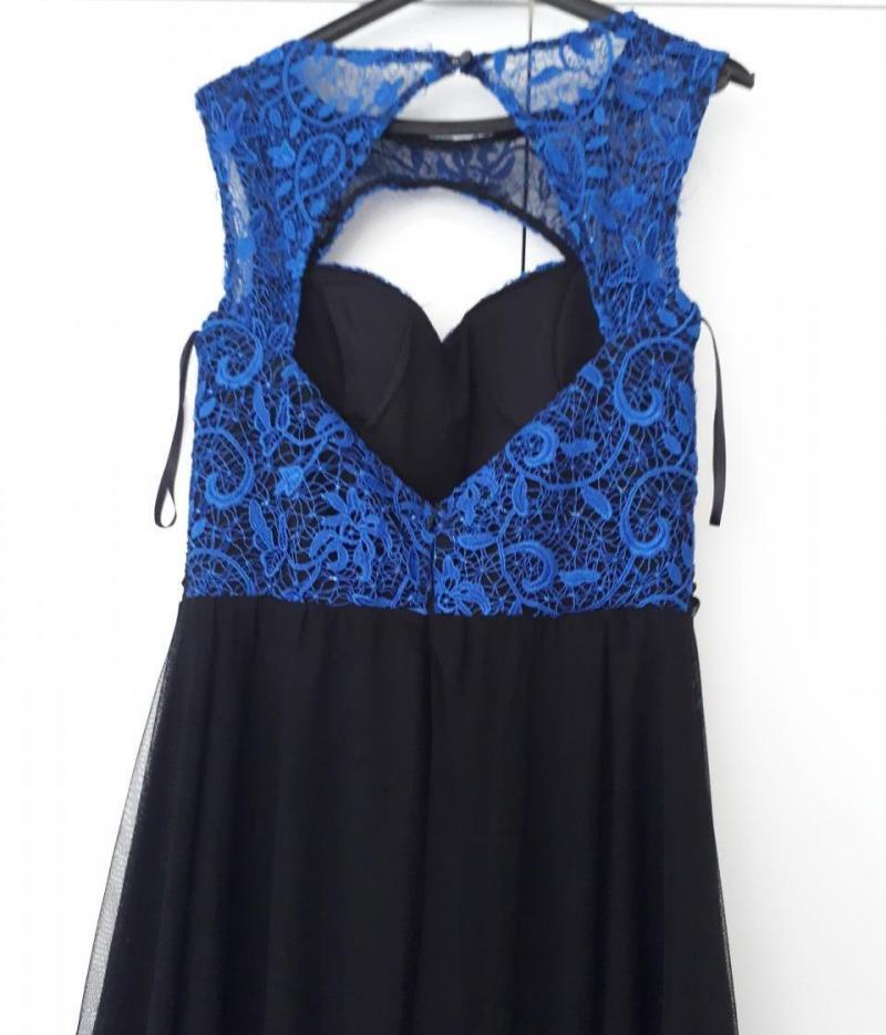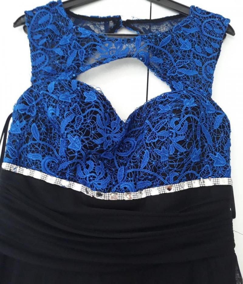 Siyah mavi güpür detaylı elbise