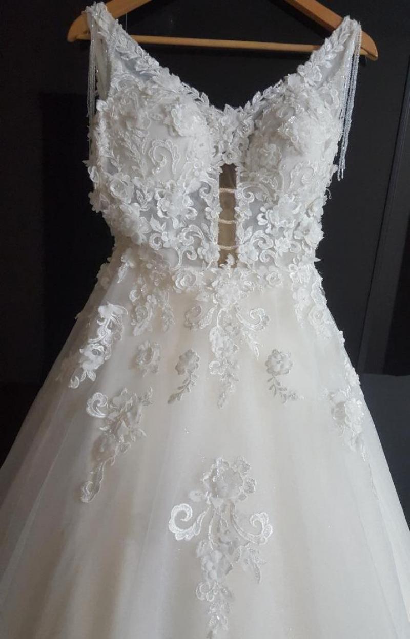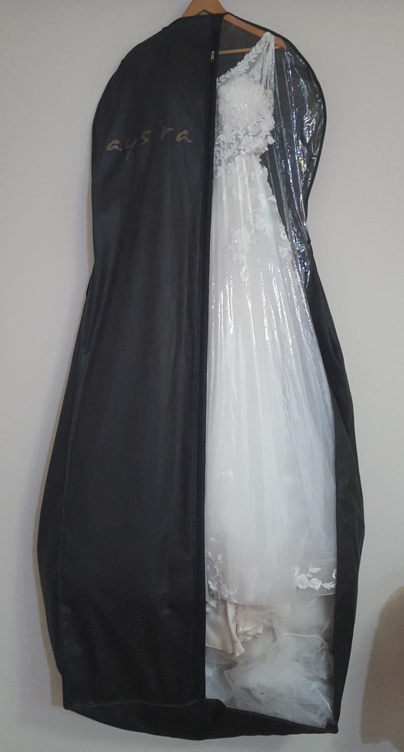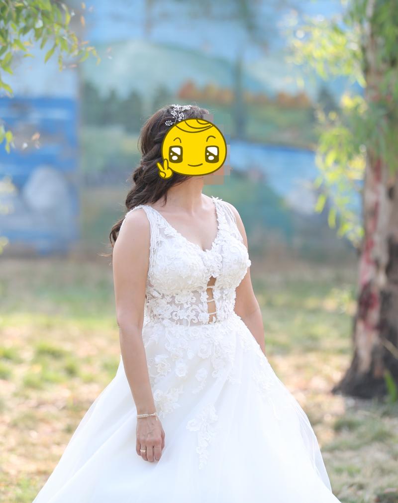 Gelinlik sıfır alınmış olup koltuk altı dekoltesi ve ön kısma dantel işlemesi ile küçük kapatmalar yapılmıştır. İnternet satış fiyatı 3800 TL olup +200 TL duvak ve +200 TL dantel işleme, tadilat 4200 TL ye mal olmuştur. Kuru temizlemeye ihtiyaç vardır.