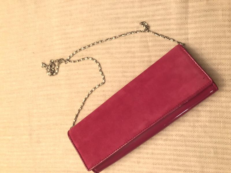 Bir tarafı rugan bir tarafı süet pembe portföy. Hafif ve pratik. Zincirli veya zincirsiz kullanılabilir. Her tür davete uygun. ABD'den alınmış, bir kez kullanılmıştır.