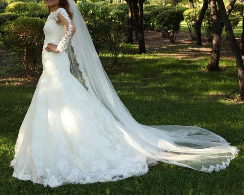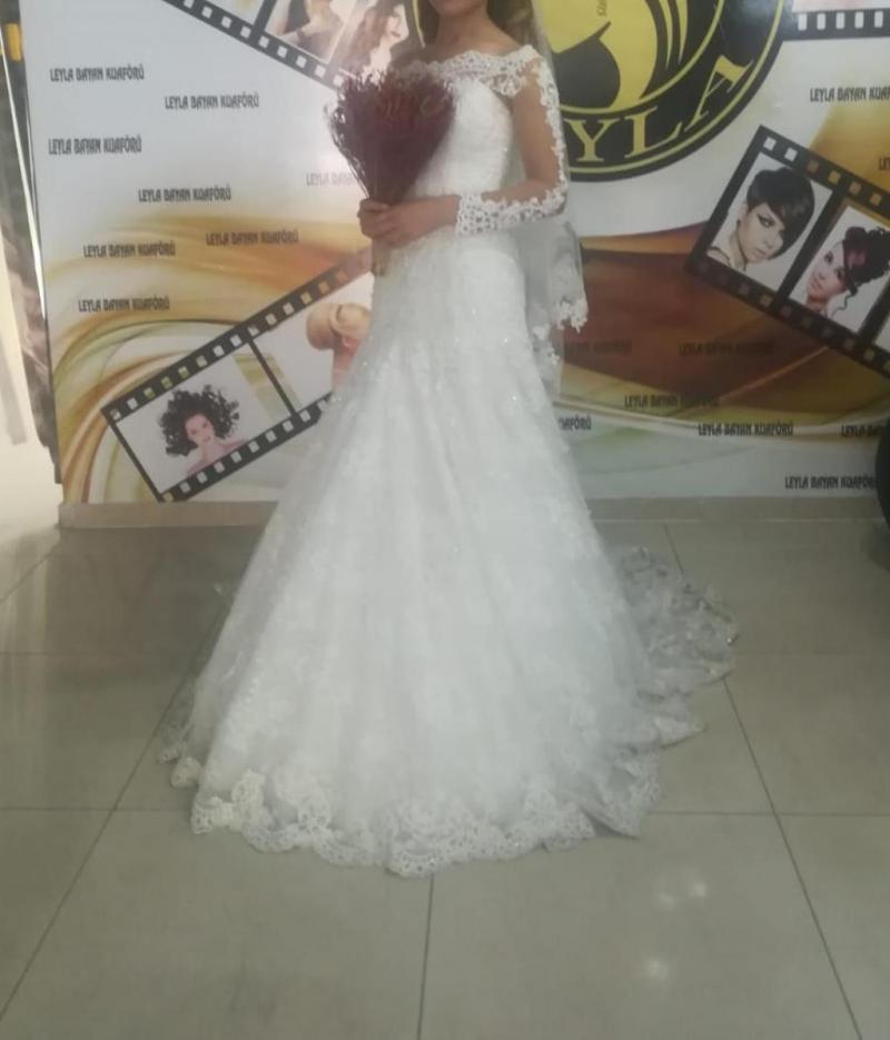 Özel dikim güpürlü balik model gelinlik