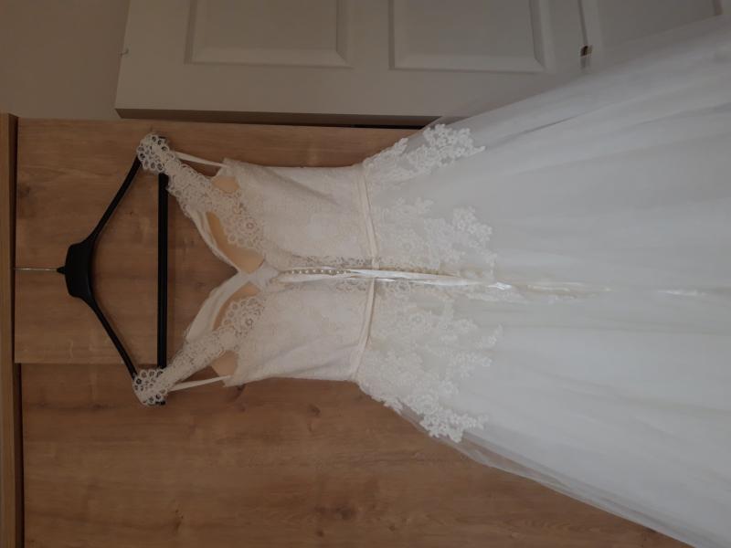 Sade şık gelinlik. 1 defa temiz kullanıldı. Sırtı hem ipli hem düğmelidir. Kısa duvak, uzun duvak, tarlatan ve gelin tacı hediyedir. İster kayık yaka ister omuz askılı kullanılabilir. Düz gelinlik olduğundan istediğiniz gibi işleme yaptırabilirsiniz.
